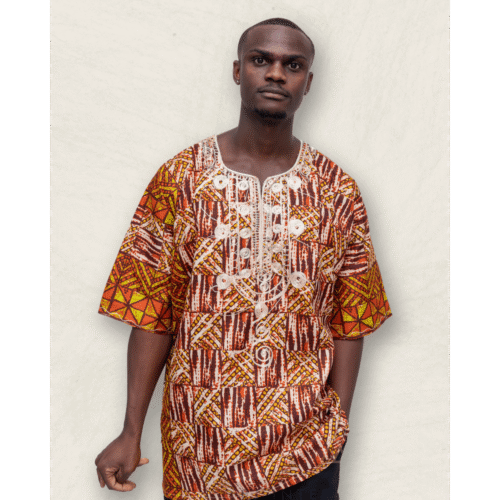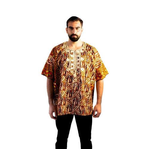 Discover the bold elegance of Afro Maya’s Men’s Collarless Short Sleeve Shirts Collection. These vibrant and eye-catching shirts are designed with classic Ethiopian prints, offering a striking blend of traditional patterns and modern style.