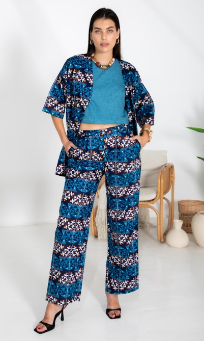 A vibrant three-piece cotton African print set designed for comfort and standout style.
