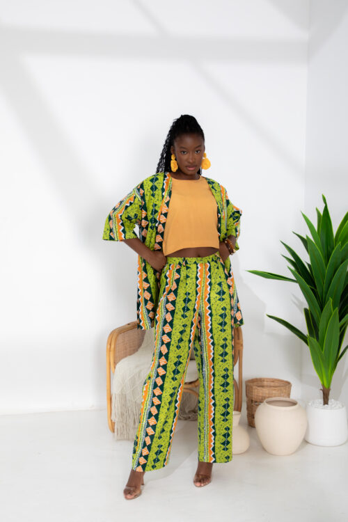 A vibrant three-piece cotton African print set designed for comfort and standout style.